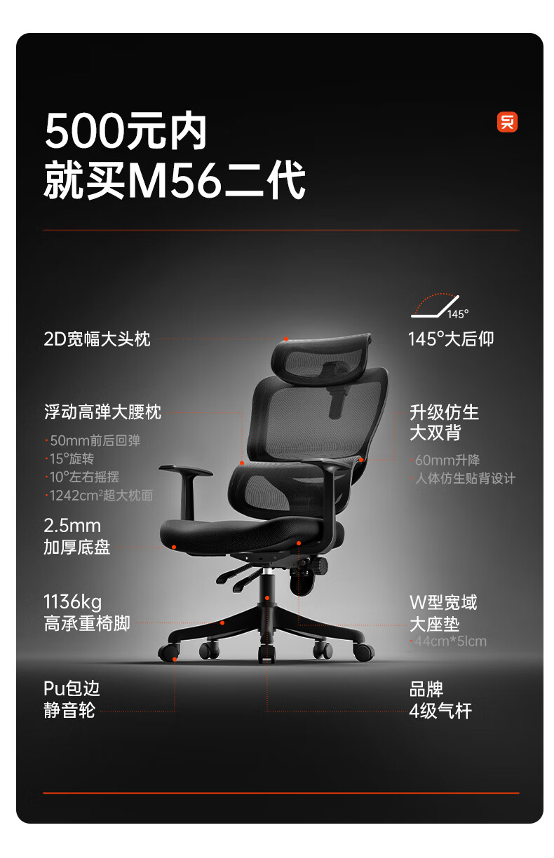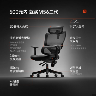 商品名称:西昊M56二代 人体工学椅办公椅电脑椅子人工力学座椅久坐电竞椅