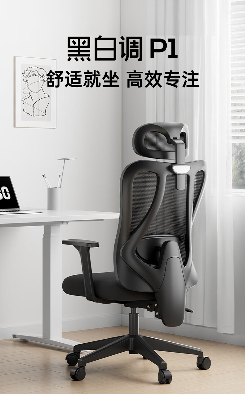商品名称:黑白调P1人体工学椅电脑椅子人工力学座椅久坐办公电竞椅学习椅国家补贴