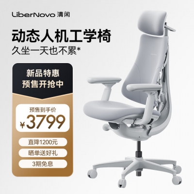商品名称:清闲LiberNovo动态人机工学椅人体工学椅电脑椅 灵感灰 45cm标准版