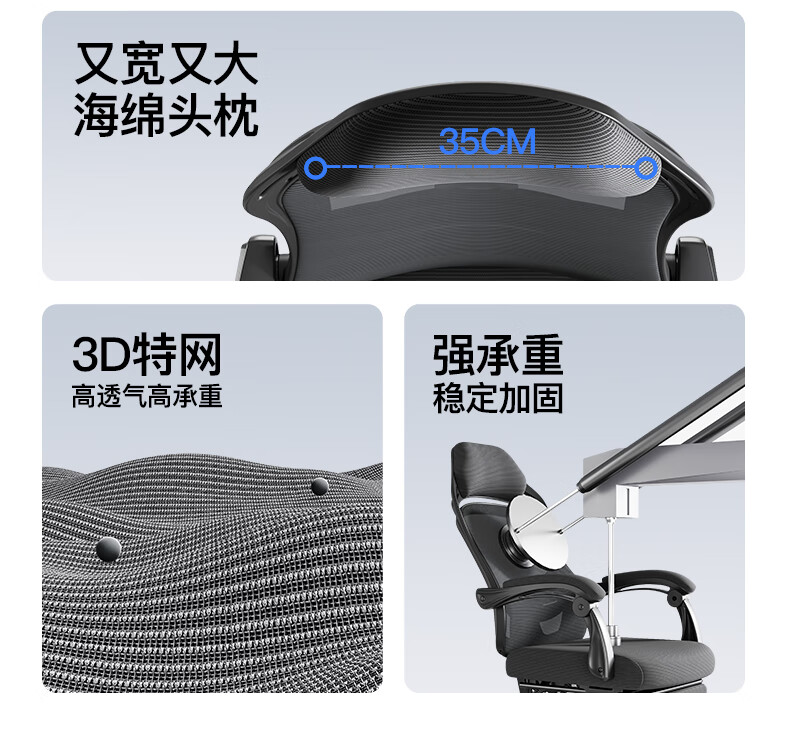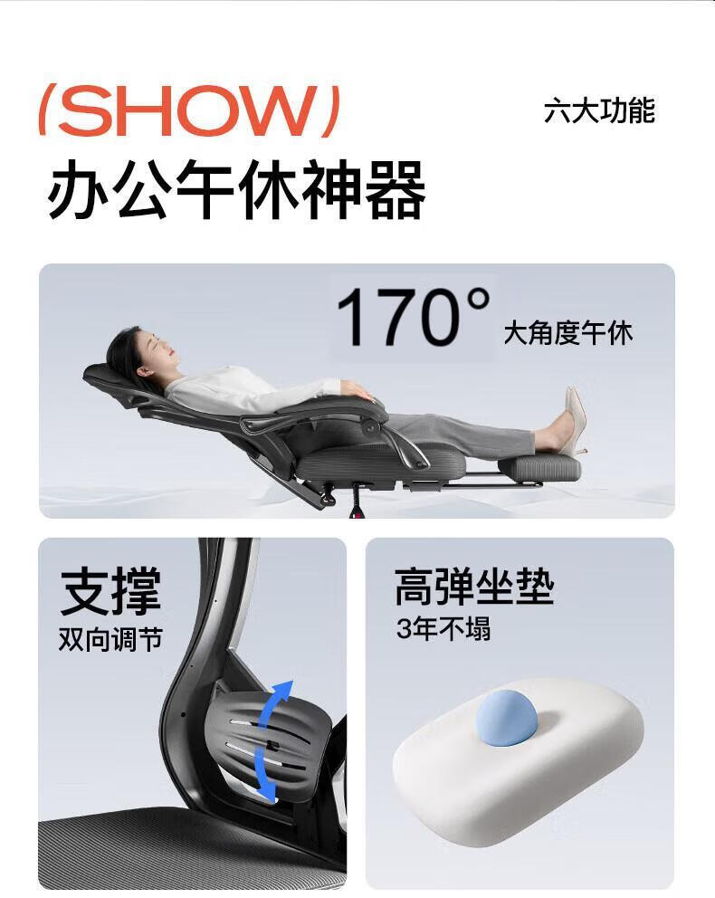椅品汇办公室可躺午休椅子大角度躺椅人工力学椅久坐舒适午睡老板电脑椅