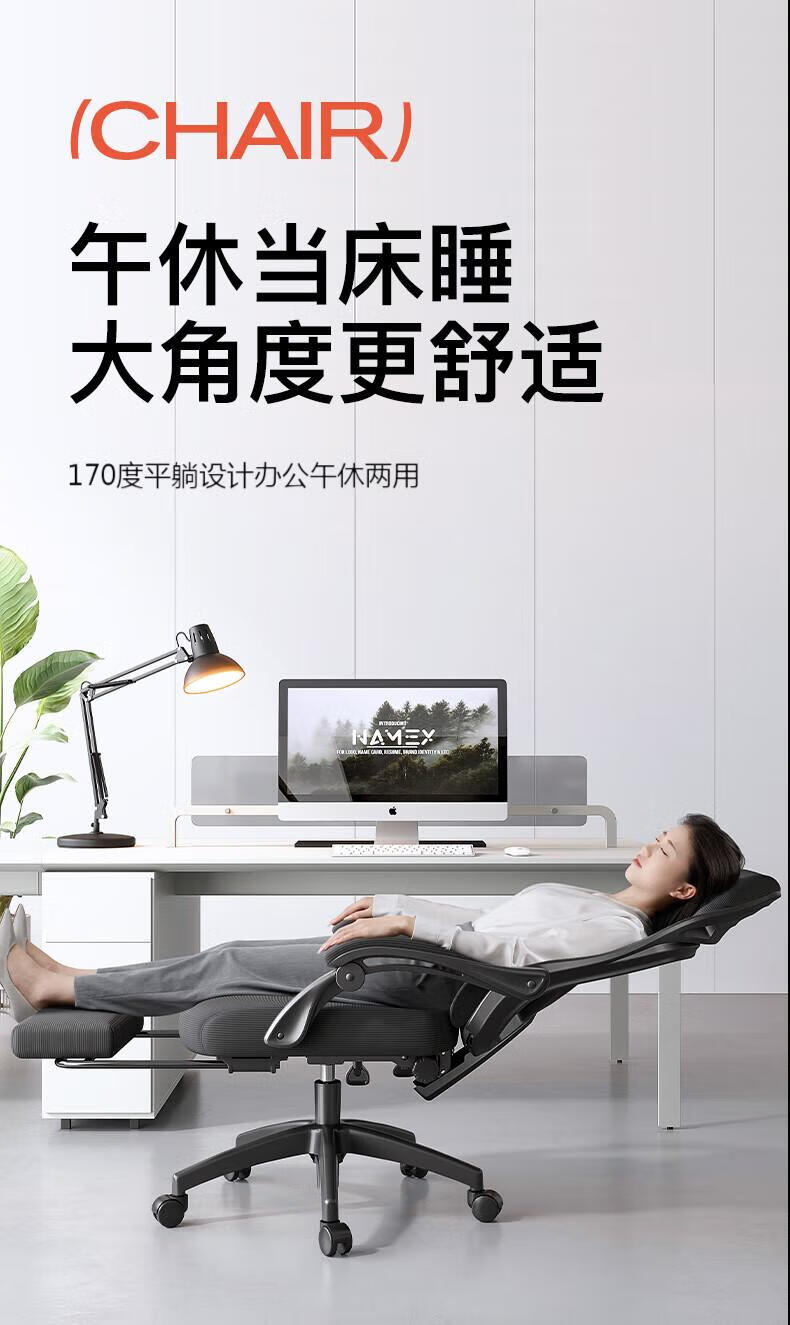 商品名称:椅品汇办公室可躺午休椅子大角度躺椅人工力学椅久坐舒适午睡老板电脑椅