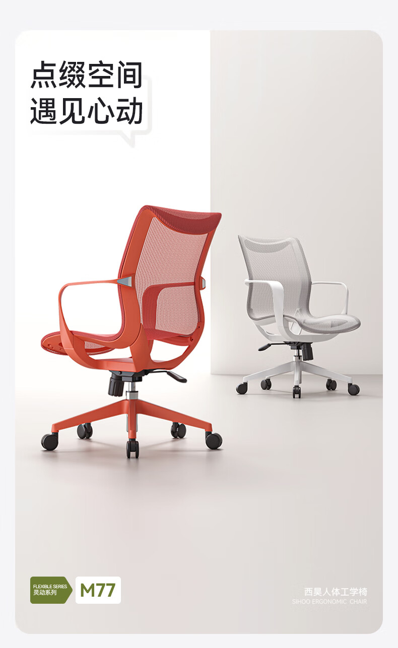 商品名称: 西昊M77椅子人体工学椅电脑椅办公椅久坐舒服学习电竞椅人工力学座椅